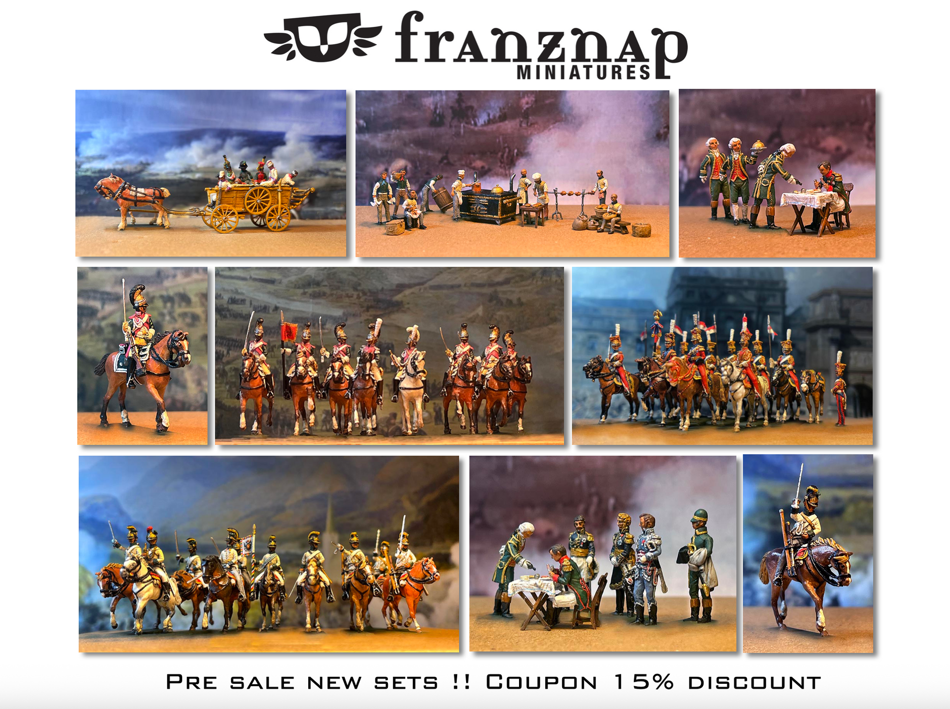 Franznap Miniatures are Napoleonic Miniatures in scale 1/72 produced in white metal, they are compatible with almost all the other miniatures of the same scale in plastic or in metal present in the market,